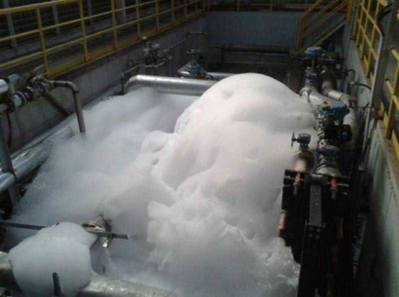 泥沙清洗消泡劑是由改性聚醚、脂化類和無機物質,采用特殊工藝精制而成的消泡劑,主要是為了解決水循環(huán)沖洗泥沙過程中產生的泡沫,也適用于泥水分離清洗階段,使用絮凝劑后污泥沉淀產生的泡沫,消泡穩(wěn)定且迅速,抑泡時間久,有效提高生產效率